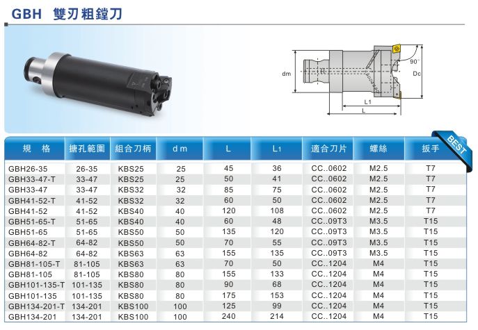 双刃粗镗刀头是将工件的已加工的孔扩大到一定尺寸,为达到加工要求,使原有加工孔径达到要求的精度和表面粗糙度的加工要求。粗镗刀头在镗孔加工常用于镗床、加工中心和组合机床上进行加工,用于加工箱身、支架与支座等工件的圆柱孔、螺纹孔、孔内沟槽和端面;使用特殊附件时,亦可加工内外球面、锥孔等。双刃粗镗刀头对钢铁材料的镗孔精度可达IT9~7,表面粗糙度Ra2.5~0.16µm。